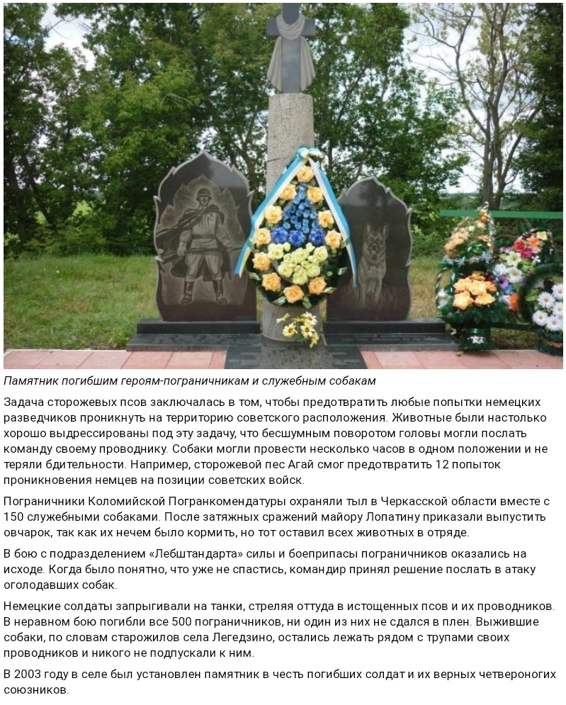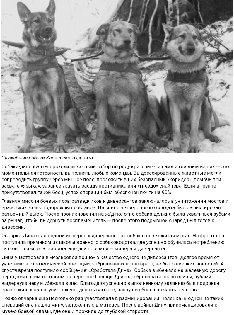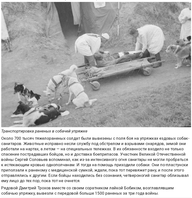 Хвостатые санитары перевезли с полей боя почти полмиллиона пострадавших бойцов. Псы-подрывники уничтожили 300 единиц вражеской бронетехники, жертвуя своей жизнью и погибая под танками.