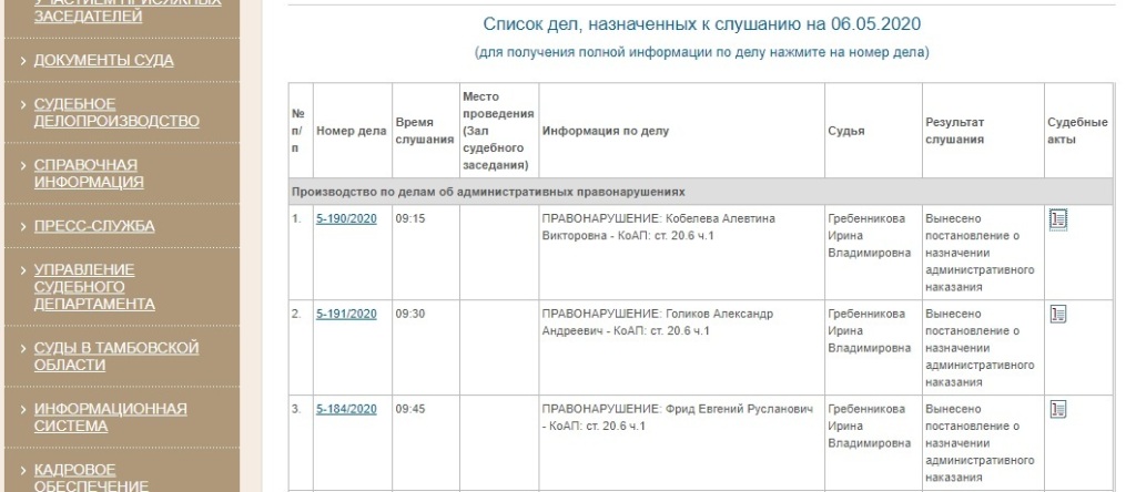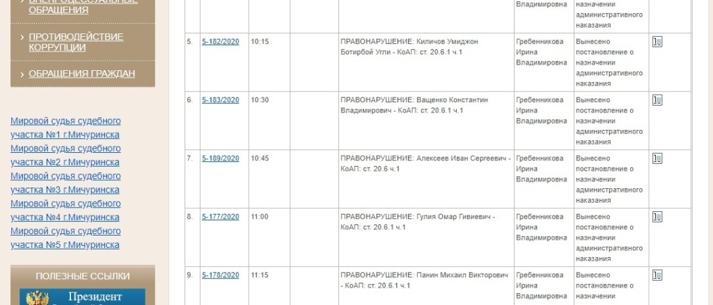 Вчера увидел на сайте нашего городского суда, как судьи поступают у нас с нарушителями режима самоизоляции.