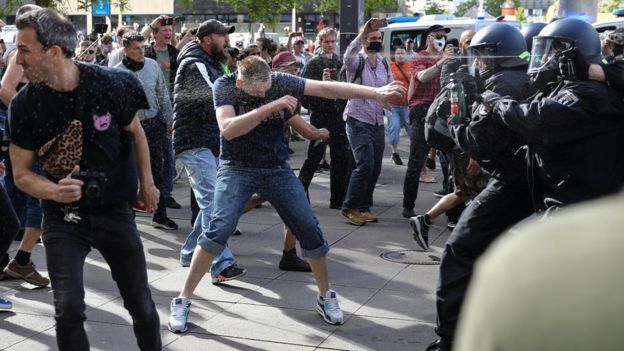 Сообщение прибыло, поскольку тысячи немцев собрались в субботу, требуя полного конца карантина.