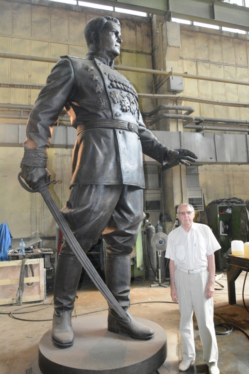 Демонстрация четырехметровой модели скульптуры известному полководцу состоялась перед этим в подмосковном городе Жуковском.