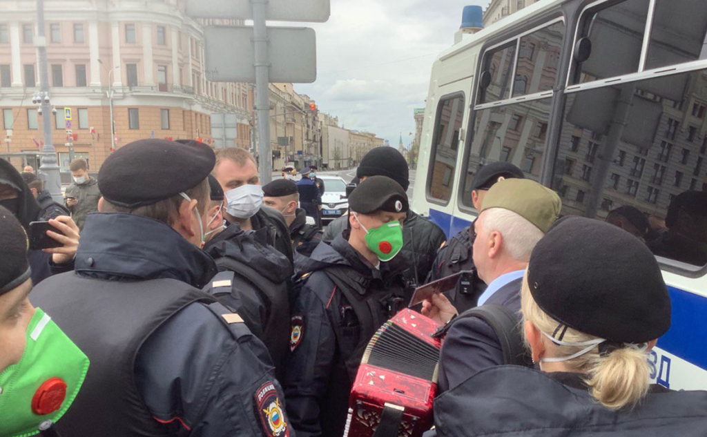 «Мы на Пушкинской площади вышли с флагами и гармошкой, стали петь праздничные военные песни», — сообщил РБК глава фракции КПРФ в Мосгордуме Николай Зубрилин. По словам парламентария, сначала акция проходила нормально, к участникам подходили полицейские и задавали вопросы, «а потом, видимо, поступила какая-то команда, и начали задерживать».