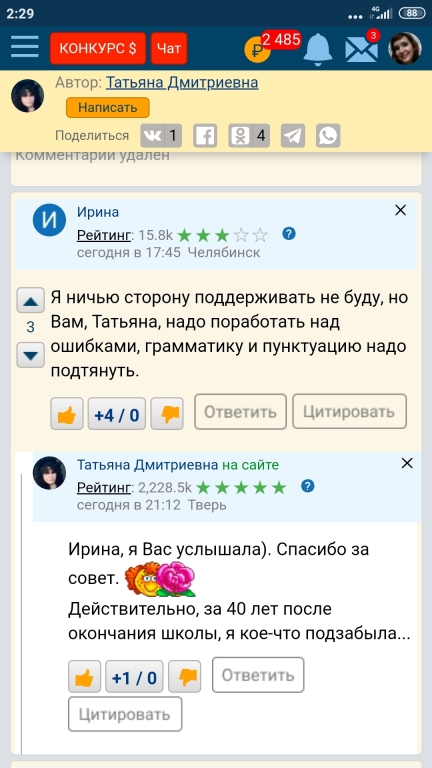 Татьяна Дмитриевна, как насчёт пунктуации, грамматики и стилистики, учите школьную программу?