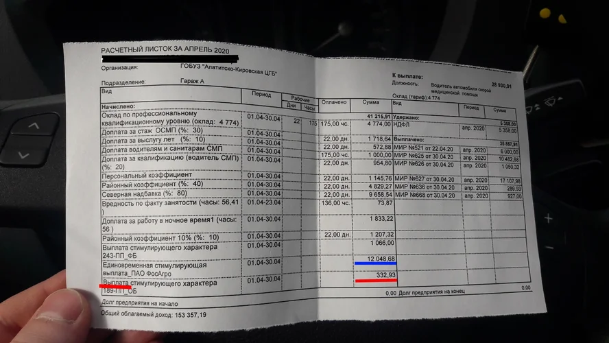 СИНИМ - Премия от местного комбината ФОСАгро. Как чувствовали что государство на...т... и руководство... Спасибо, но и эти деньги бухгалтерия умудрилась обложить налогом и вычетом.