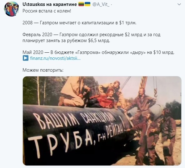 Они миллера сецчас просят у Путина денег в связи с пандемией. Бедолаги есть не чего.