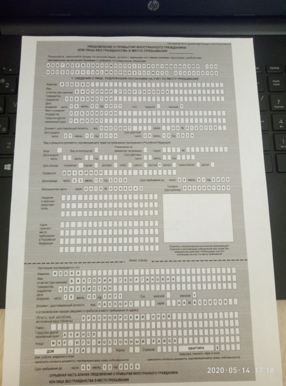 -Уведомление о прибытии согласно Приказа МВД от 30.07.2019 г. № 514
