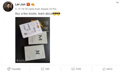 Стоит отметить, что в китайском сервисе микроблогов есть функция определения модели смартфона, с которого отправлялось сообщение. Ранее такая опция неоднократно позволяла узнать о готовящихся к релизу новинках, но в этот раз Лей Цзюнь поделился постом, призывающим фанатов купить несколько книг — и вызвал в свой адрес шквал критики. Оказалось, что основатель Xiaomi использовал для публикации гаджет Apple.