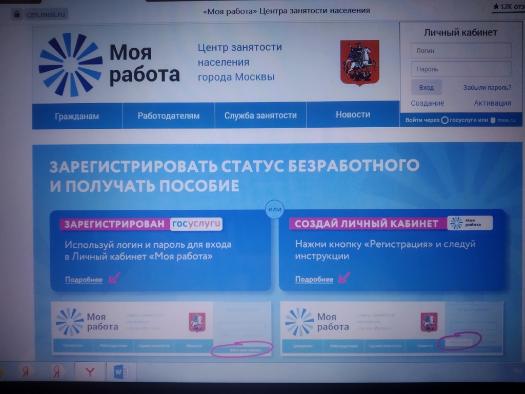 2. В личном кабинете выбрать вкладку Государственные услуги гражданам - Оформление пособия по безработице и поиск работы.