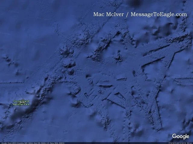 Археолог-любитель Мак Макивер обнаружил на дне Тихого океана таинственное подводное сооружение. Он нашел аномалию, изучая морское дно с помощью программы Google Планета Земля. Позже он изучил это место во время глубоководного погружения на борту подводной лодки. Загадочная подводная структура расположена возле побережья Коста-Рики, недалеко от острова Кокос. Разглядеть структуру на Google Планета Земля можно по координатам 6 ° 04 ‘ 56 “N, 86 ° 03′ 16 “O. По словам Мак Макивера, структура огромна, она находится на глубине 1800 метров, а ее длина составляет около 128 километров. Исследователь также разглядел на дне океана дороги или взлетно-посадочные полосы шириной около 8 километров. Он сравнил находку с современным аэропортом и нашел поразительное сходство: - "Единственное отличие в том, что один из них находится на высоте 300 метров над уровнем моря, а другой на глубине 1800 метров".