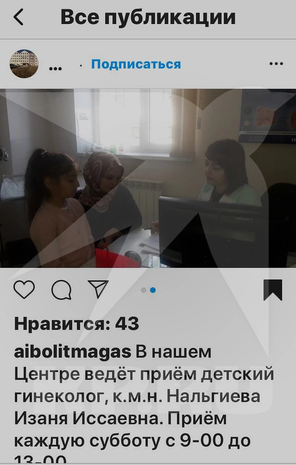 -Через два дня мы с сестрой и мамой поехали в эту клинику в Магасе. В регистратуре потребовали показать нам карту Аиши и договор об оказании платных услуг. Но нам ответили, что при обрезании никаких карт не заводят. Как так, скажите? - изумляется Лина. - Накануне я проконсультировалась с юристами. И знала - есть закон, что медучреждения обязаны заводить карту и иметь подписанное представителем ребенка добровольное согласие на медицинские манипуляции. Я потребовала встречи с главврачом. Мы провели в его кабинете три часа. Все это время он уверял нас, что карту ищут, бумаги где-то в другом здании. Я понимала, что это вранье, не могло у них быть никаких документов, мачеха эта никакого юридического отношения к Аише не имеет. Как и отец. Они не могут быть законными представителями и подписывать какие-то бумаги. И спустя три часа этот главврач признался, что никакой карты у них нет. Прибежала и эта гинеколог, которая кричала на нас и угрожала проблемами.