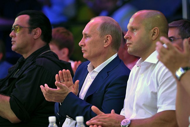 Актёр Стивен Сигал, Владимир Путин и многократный чемпион мира по смешанным единоборствам Фёдор Емельяненко.