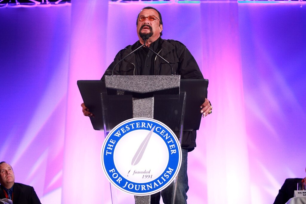 Steven Seagal speaking at the 2014 Western Conservative Conference at the Phoenix Convention Center in Phoenix, Arizona. Copyright © Western Center for Journalism/Gage Skidmore.