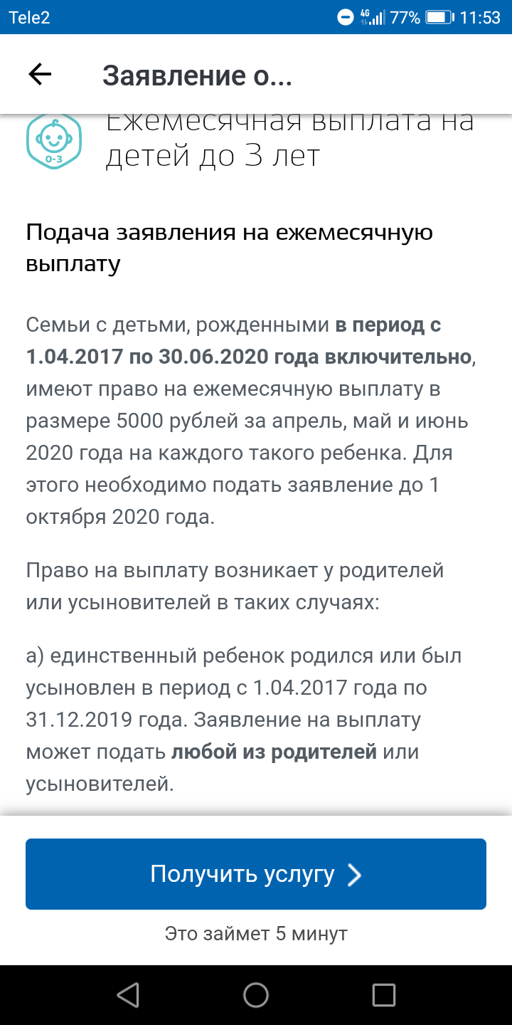 Здравствуйте, 9 апреля через сайт ПФ РФ я подала заявление на выплату 5000 рублей с мая по июнь. 16 апреля мне ободрили и перевели 5000. Но в выплате за май и июнь отказали в устной форме, так как 2 апреля сыночку исполнилось три годика. Хотя заявление одобрили на выплату на три месяца и на портале госуслуг по их информации мы попадаем по дате рождения ребёночка. Если не сложно, то объясните мне законно ли мне отказали. И почему не проинформировал, что выплата будет только за один месяц.