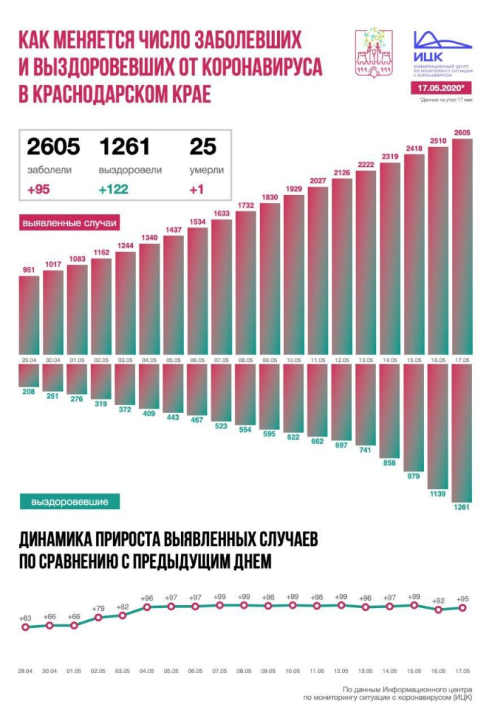 Общее количество заболевших в Краснодарском крае достигло 2605 человек.