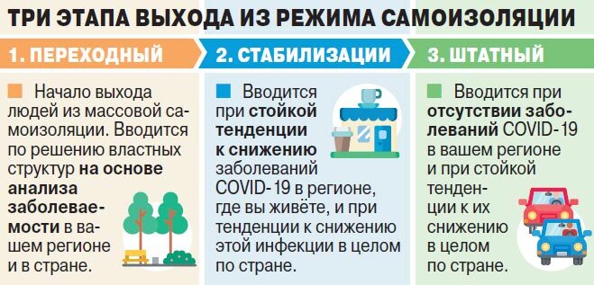 Возвращение к привычной жизни не может случиться моментально. Не будет такого, что в один прекрасный день в телевизоре появится Путин и объявит «самоизолировавшимся»: «Всем спасибо, все свободны!». А как же будет?