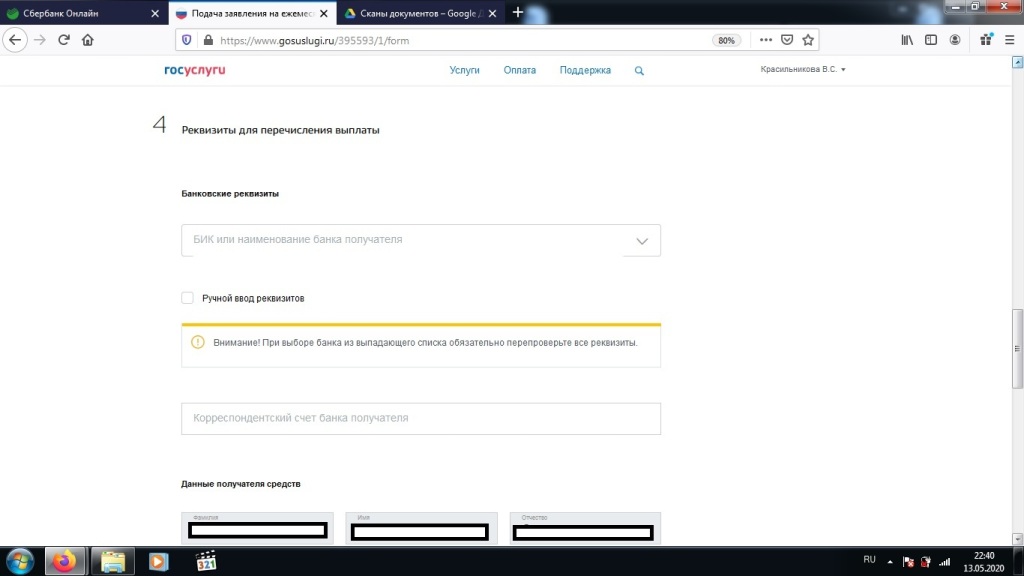 7. Внимательно введите реквизиты банковского счета и БИК вашего банка. Если у вас есть электронный файл с этими данными, то лучше их скопируйте и вставьте. Именно на этот счет будет перечисляться пособие. Ввести можно только счет, открытый только на вас. На чужой счет деньги перечисляться не будут.