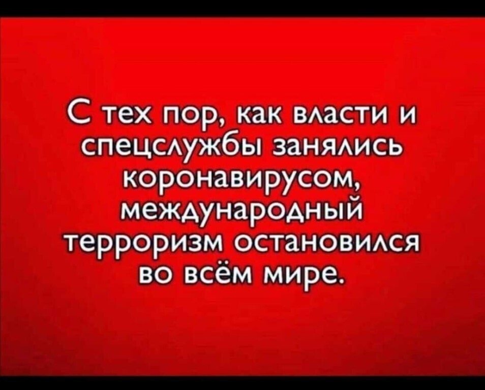 "Про мировой терроризм практически ничего не слышно уже несколько месяцев. Либо "террористы" так боятся страшного монстра коронавируса, либо главные провокаторы заняты другими, более важными делами."