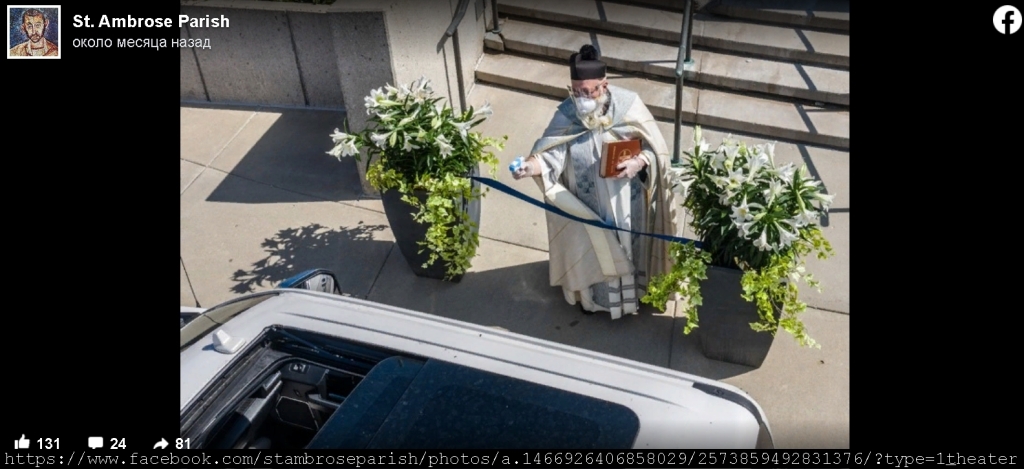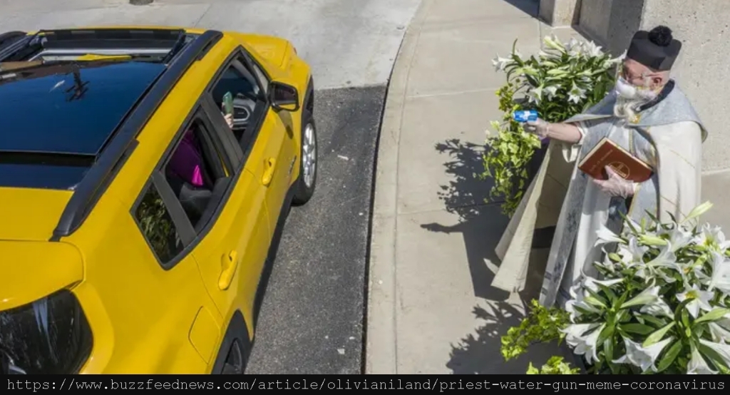 Вместо сосуда со святой водой священник благословлял прихожан, подъезжающих к отцу на автомобилях, с помощью игрушечного пластикового пистолета.