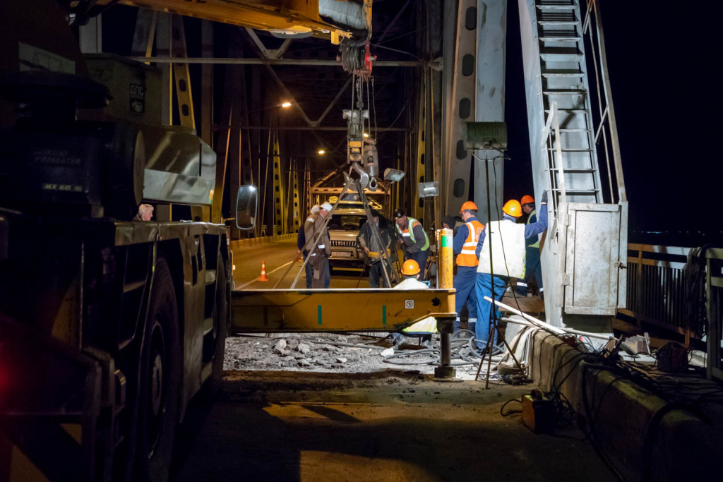 В Благовещенске ночью заменили плиты перекрытия на мосту через Зею