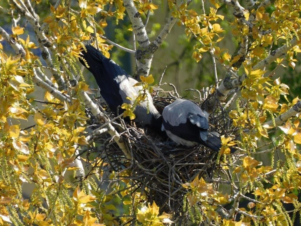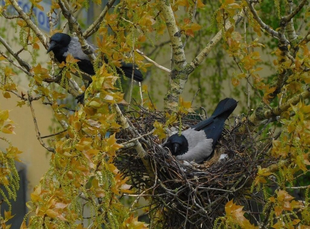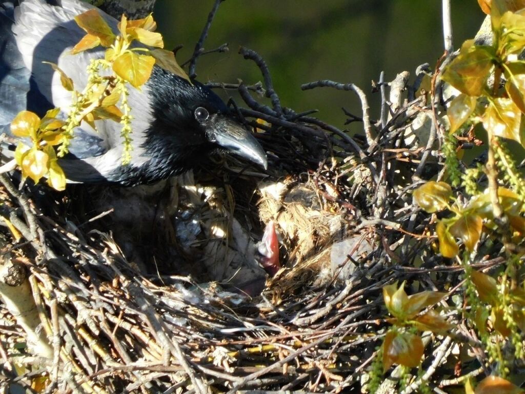 Буквально в среду, 20 мая, появились новые фотографии с вороньим семейством. По словам автора снимков, в гнезде появились птенцы.