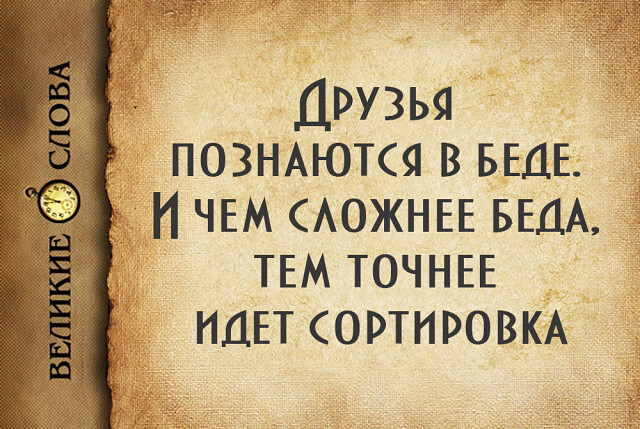 Друзья познаются в беде. Изречению многие тысячи лет.