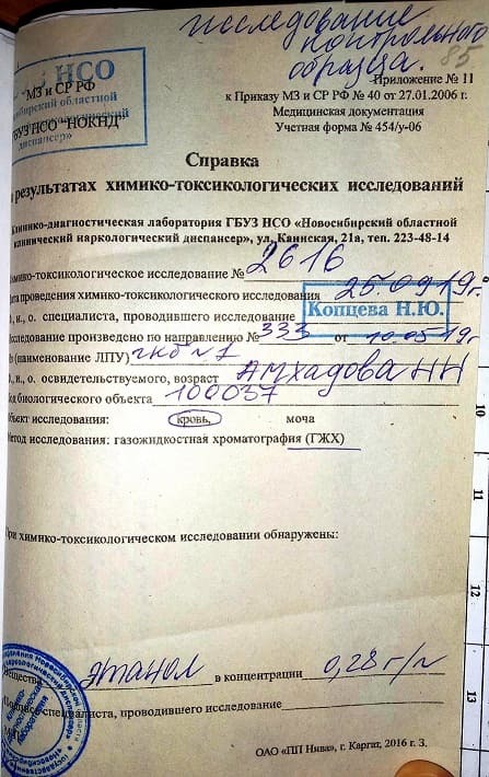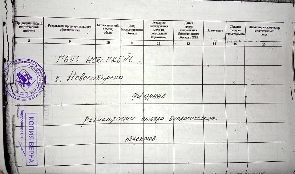 Ведь на лицо грубейшие нарушения в лечебных учреждениях Новосибирской области при заборе биологических объектов освидетельствуемых лиц.