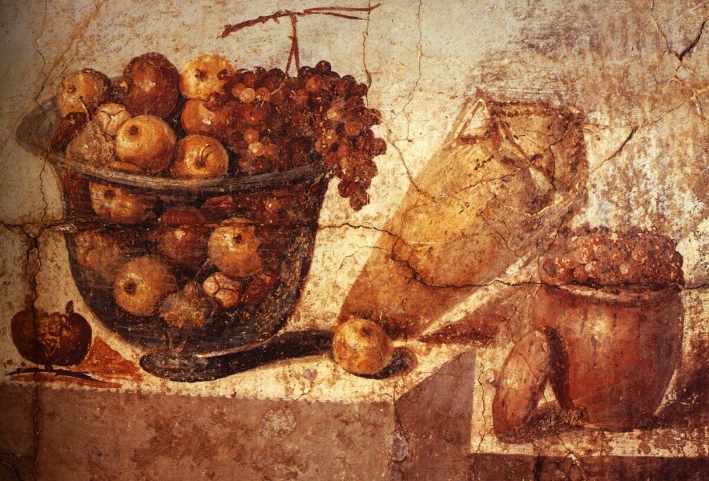 В засыпанных Везувием виллах археологи нашли массу фресок и мозаик с натюрмортами - просто множество овощей.