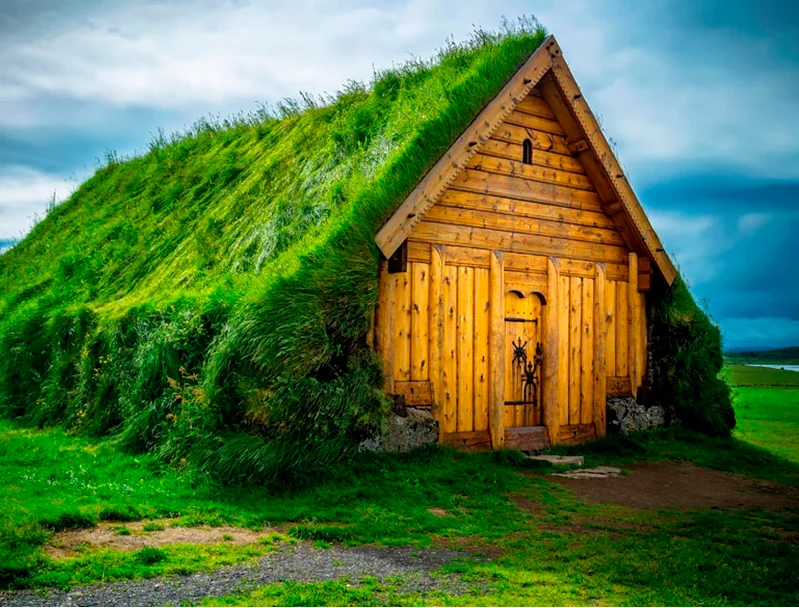 Марина! Спасибо. А это древнее жилища викингов 9-11 веков. Скандинавы жили большими семьями: с сыновьями и их женами, с внуками и конечно же со своими малолетними детьми. Это обусловлено тем, что вместе было легче обрабатывать землю и следить за хозяйством. Занимались северяне, кстати, рыболовством, земледелием, животноводством и охотой. Для такой многочисленной семьи, необходимы были большие дома. Такие дома были достаточно распространены. В них много места и они достаточно просторные, как раз для большого семейства. В жилищах этого типа жили обычно вожди и богатые люди, отличаются они тем, что в них обязательно присутствует дополнительное место для приема гостей. Строились дома из дерева, либо камня с дерновыми кирпичиками (в зависимости от местности). Фундамент появился позднее, а до этого бревна и каркас просто закапывали в землю. Пол был из земли с наложенным сверху сеном. А крыши покрывали сначала досками, потом древесной корой и дерном (благодаря этому крыша и была покрыта травой). Во время пиров зажигали продольный огонь, ибо очаговая яма обычно была во всю длину дома. Его использовали для приготовления еды и через него, для очищения, выбрасывались отходы. Само собой, для отхода дыма в крыше имелось отверстие. В домах было достаточно темно, так как северяне делали лишь маленькие слуховые окошки высоко в стене, которые все равно завешивали или закрывали, так как тепло на севере очень ценилось. Свет давали бойницы в крыше, либо очаг или масляные лампы. Усадьбы огораживали, а во дворе, кроме главного дома, находились и другие здания: дома для рабов, амбары, загоны.