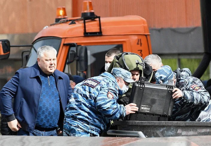 Непонятно было, кем является захватчик — сначала появилась информация, что он курьер и якобы одет в зеленую куртку Delivery Club. Но в беседе с «Ъ FM» представитель компании опроверг эту информацию. Как рассказали «Ъ» дежурившие в оцеплении полицейские, к банку отправили переговорщика.