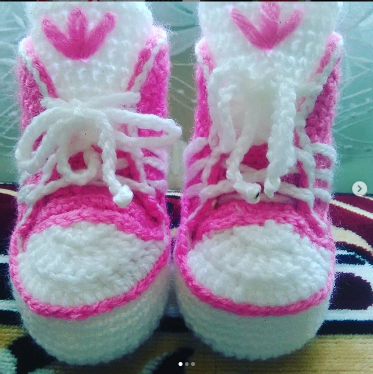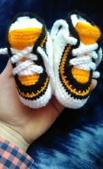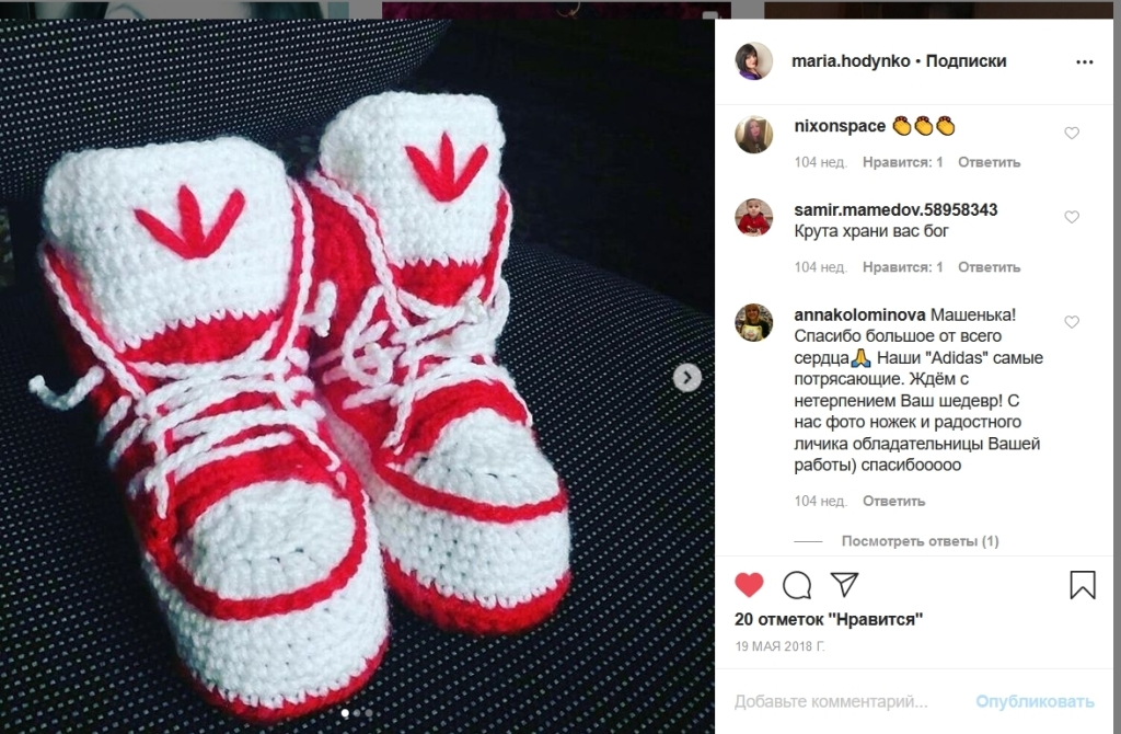 А кто-нибудь из вас хоть раз видел вязаные детские кроссовочки в стиле "Адидас"? Лично я впервые подобное увидела: