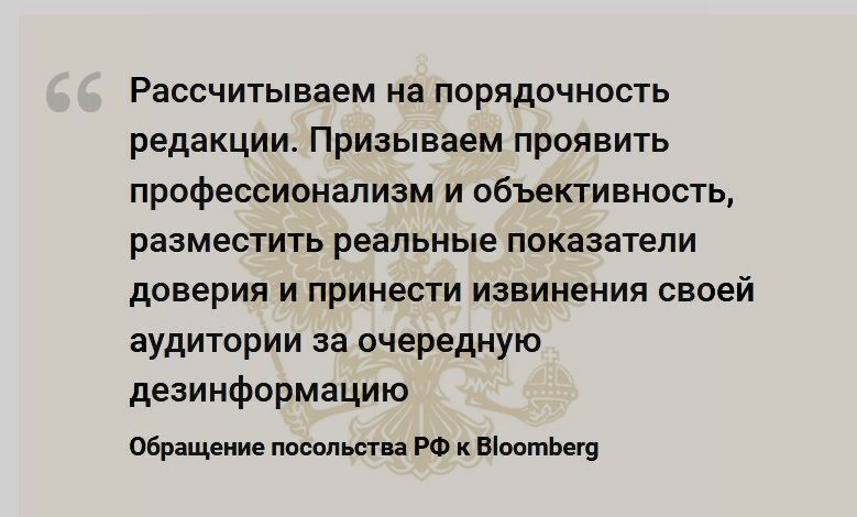 Возбудилось и посольство России в США опубликовало в Фейсбуке пост, призывающий информагентство Bloomberg извиниться за публикацию графика: