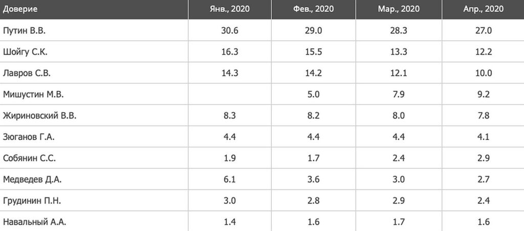 Очень возбудился давеча, глава ВЦИОМ Валерий Фёдоров, который заявил, что «в течение последнего месяца позитивная оценка работы президента колеблется в узком диапазоне 61−63%», а уровень доверия Путину — в диапазоне 67−68%". А произошло это после публикации информагентства Bloomberg скромной рейтинговой таблички-
