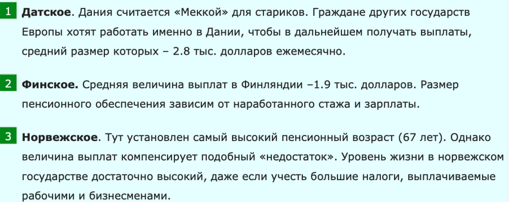Самые развитые системы пенсионного обеспечения граждан имеются в следующих странах мира: