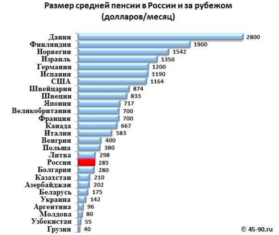 Как мы видим, Россия занимает не завидное место в вышеуказанной таблице и нам до других стран в плане пенсионного обеспечения надо ещё расти и расти! И как мы все знаем, чтобы увеличить размер пенсий в нашей стране власти ничего лучше не придумали как пенсионную реформу, основанную на повышении пенсионного возраста в России, которая по моему личному мнению, с треском провалилась. То есть, как обычно... ХОТЕЛИ КАК ЛУЧШЕ, А ПОЛУЧИЛОСЬ КАК ВСЕГДА!