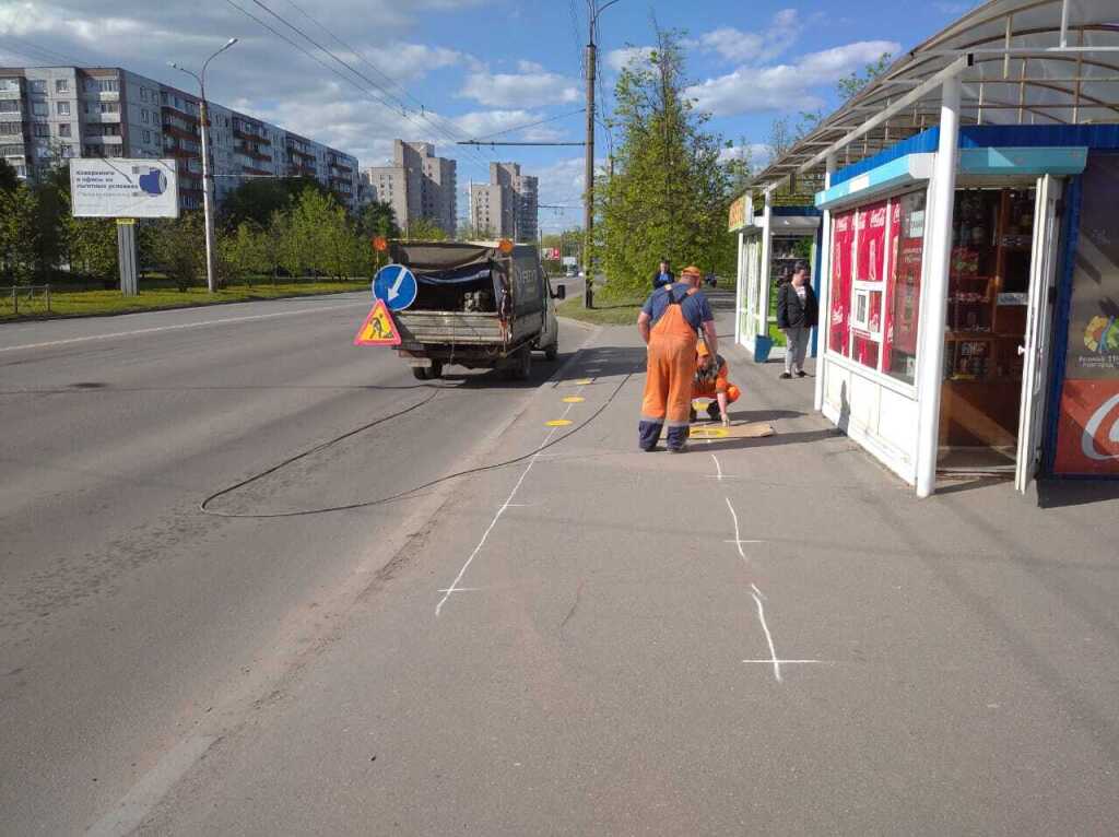 В России массово наносят разметку на автобусных остановках, которая должна напоминать жителям о необходимости соблюдения социальной дистанции.
