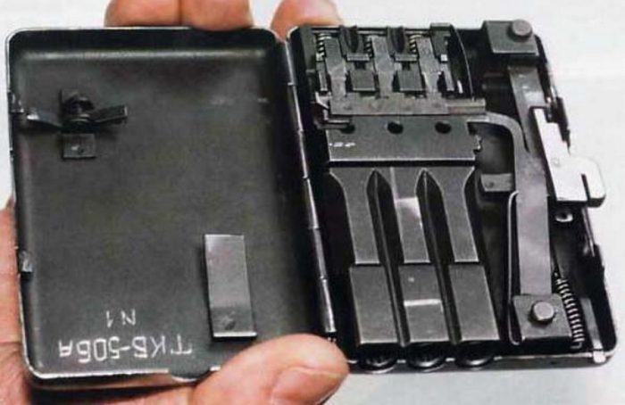 Это как раз и был ТКБ-506 — портсигар, с вмонтированным в него трехзарядным стреляющим устройством. Внешне он выглядел как обычный портсигар, который не вызывал никаких вопросов у окружающих.