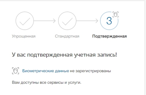 Вернувшись на вкладку Госуслуг, вы увидите системный запрос о предоставлении данных государственным организациям (налоговой и т. д.). После вы обнаружите смену статуса вашей регистрации со стандартной на подтвержденную. Теперь вам доступен полный комплекс услуг.