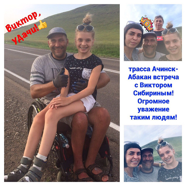 С плакатом "На новую коляску", спальным мешком и палаткой Сибирин отправился по трассе. Воспоминает: "Прикольно было". На реплику "Хорошо хоть в наше время телефоны изобрели" отвечает: "А вот телефон у меня в первый же день сломался, что-то я там понатыкал неудачно и повредил экран. Но на входящие он все-таки работал".