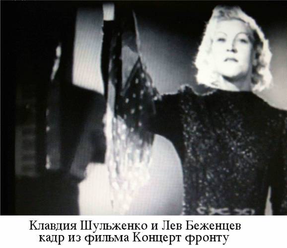 6 ноября 1942 г. на экраны вышел фильм «Концерт фронту». Фильм предназначался для показа нашим воинам на всех фронтах в частях (даже в землянках на передовой), на кораблях, в госпиталях. В съемках участвовало много популярных артистов, и среди них была Клавдия Шульженко с «Синим платочком», исполненным в сопровождении аккордеонистов Льва Беженцева и Леонида Фишмана в обработке Беженцева. Уже через несколько дней в блокадном Ленинграде была выпущена пластинка с фонограммой из фильма. «Синий платочек» стал самой известной песней Великой Отечественной войны.