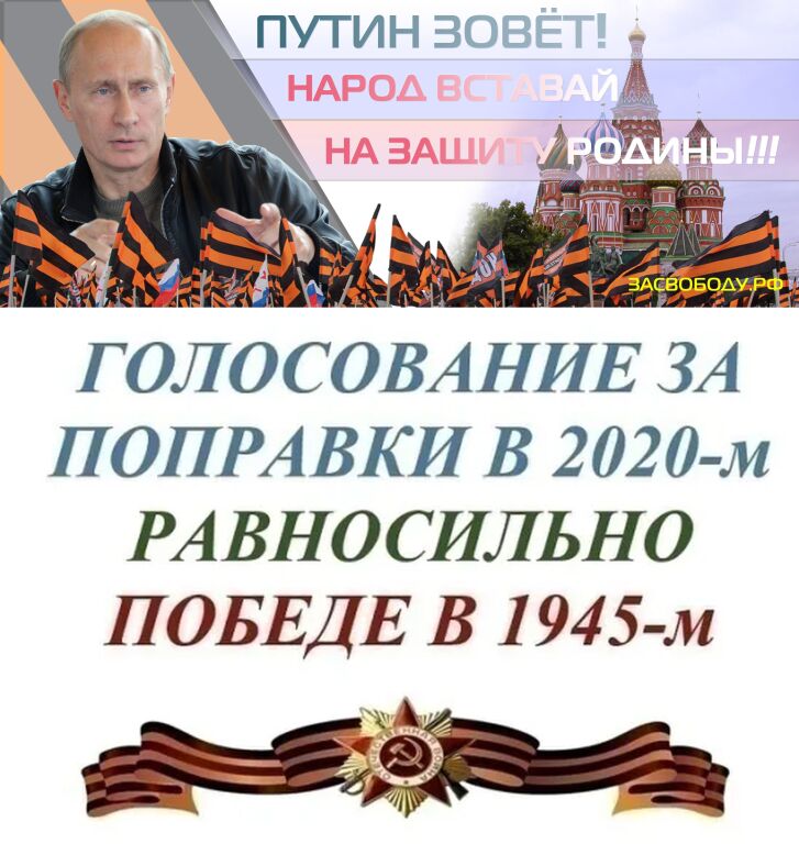 Уже звучат какие-то примерные июльские даты проведения всероссийского волеизъявляющего маскарада, а значит у системы есть ещё больше месяца для "промывания мозгов". Ведь всемогущие поправки спасут нашу медицину, культуру, природу, пенсионеров и даже память предков!