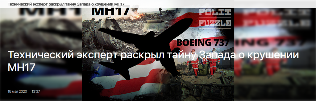 Официальная версия, которой придерживается Совместная следственная группа (ССГ), заключается в том, что малайзийский «Боинг», летевший из Амстердама в Куала-Лумпур, был сбит ракетой, выпущенной из ЗРК «Бук». При этом ответственность за эту трагедию Запад всецело возлагает на ополченцев Донбасса и Россию, якобы передавшую первым военный комплекс. При этом роль Украины, допустившей пролет самолета над территорией, где велись боевые действия, в этой истории настойчиво замалчивается.