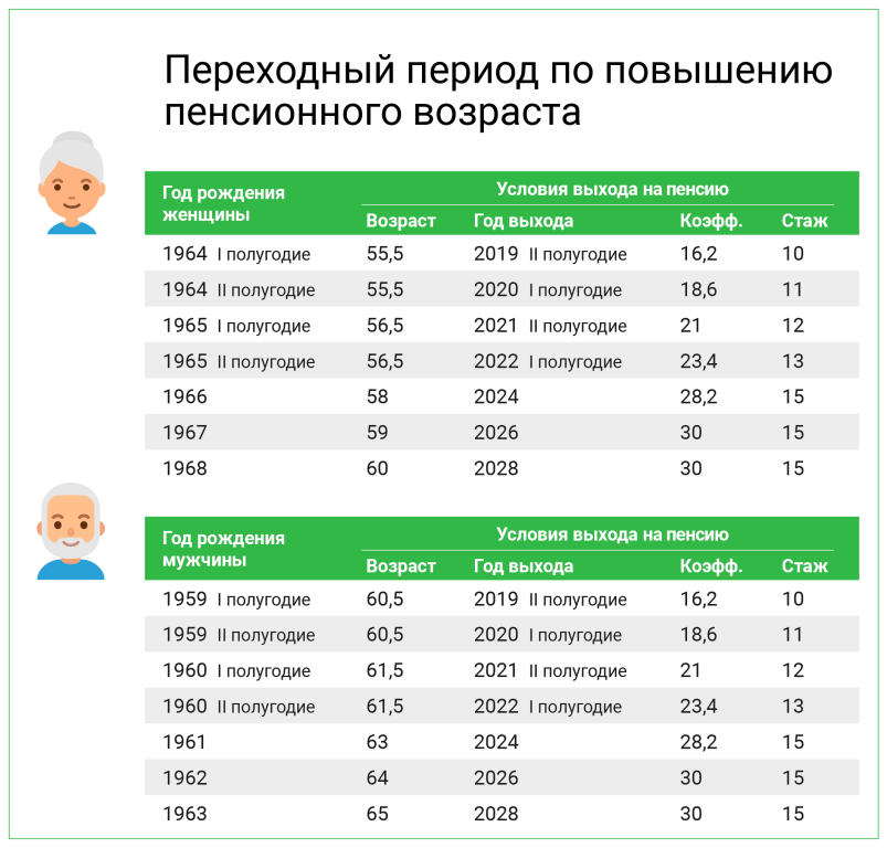 переходного периода по повышению пенсионного возраста, который начинает действовать с