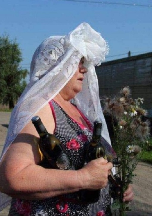 Молодец женщина. Я так понимаю - это свадьба. В наши тяжелые времена на всем надо экономить. Трусов правда не видно. А на ней дорогой закрытый купальник и букетик, явно, дизайнерский.