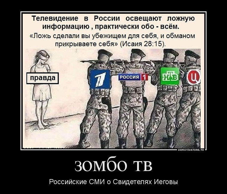 Хорошая картиночка про расстрел правды. Результат лжи росСМИ налицо. Спроси любого добросовестного зрителя (слушателя, читателя...) официальных СМИ про запрет Свидетелей Иеговы, и что услышите? "Пра-а-авеное реше-е-ение! Прохо-о-оду от них не-е-е было!" А самим-то невдомек, что власти, прямо у них на глазах, втаптывают в грязь правосудие, справедливость, человечность. Такое наглое надругательство над понятием "человек"! А скотство возводится в ранг добродетелей.