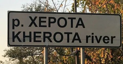 В Адлерском районе Сочи до недавнего времени существовала как раз такая вот достопримечательность с неблагозвучным названием. С дорожным указателем "Река Херота" любили фотографироваться гости курорта.