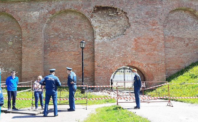 В ГМЗ отметили, что заявка на реставрацию этого фрагмента стены уже находится в министерстве культуры РФ. В настоящее время на месте обрушения работают сотрудники МЧС, реставраторы и музейщики. В ГМЗ отметили, что заявка на реставрацию этого фрагмента стены уже находится в министерстве культуры РФ.