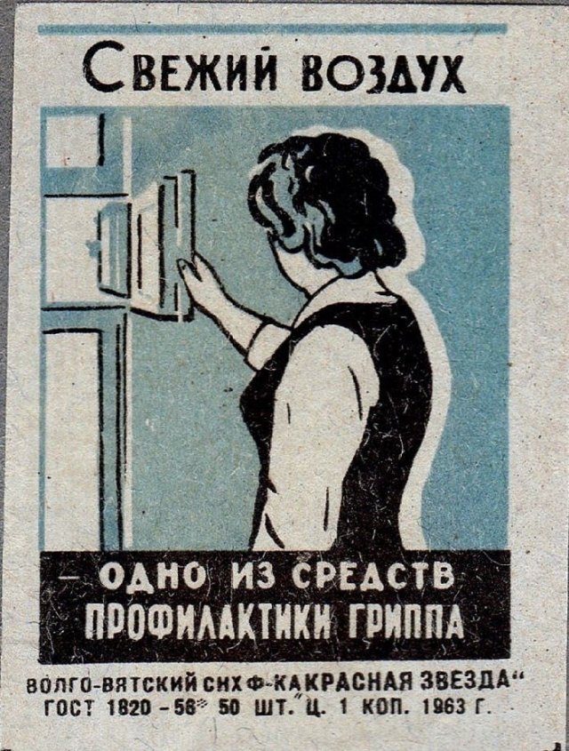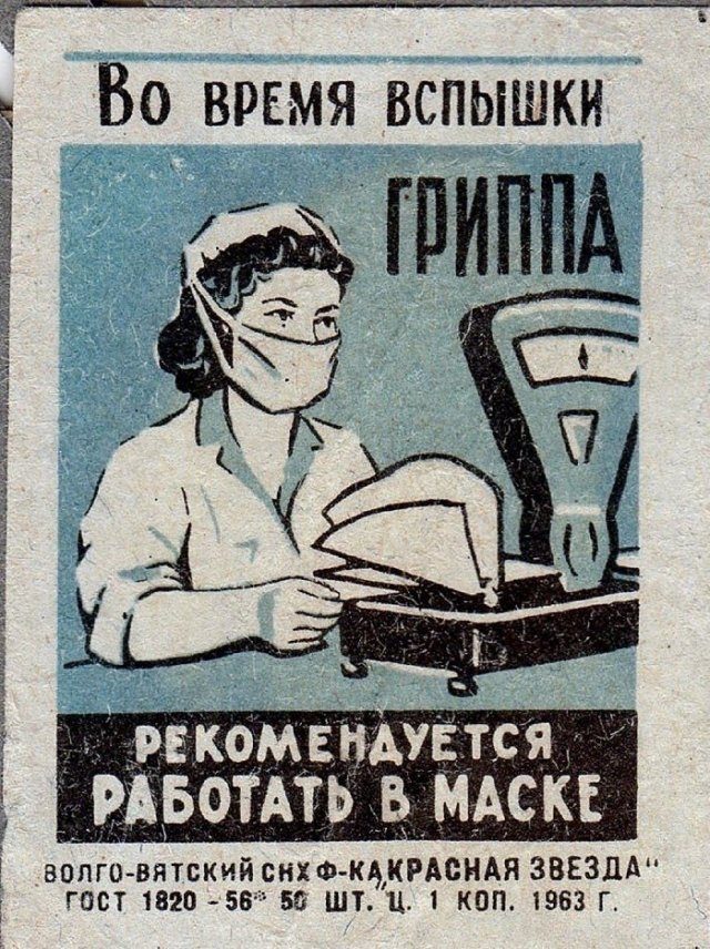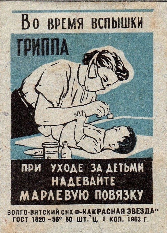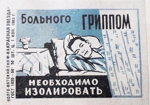 В прошлых годах в СССР было несколько серий спичечных этикеток по теме вспышек и профилактики гриппа. Таким образом эти рекомендации распространялись по самым разным уголкам нашей необъятной страны.