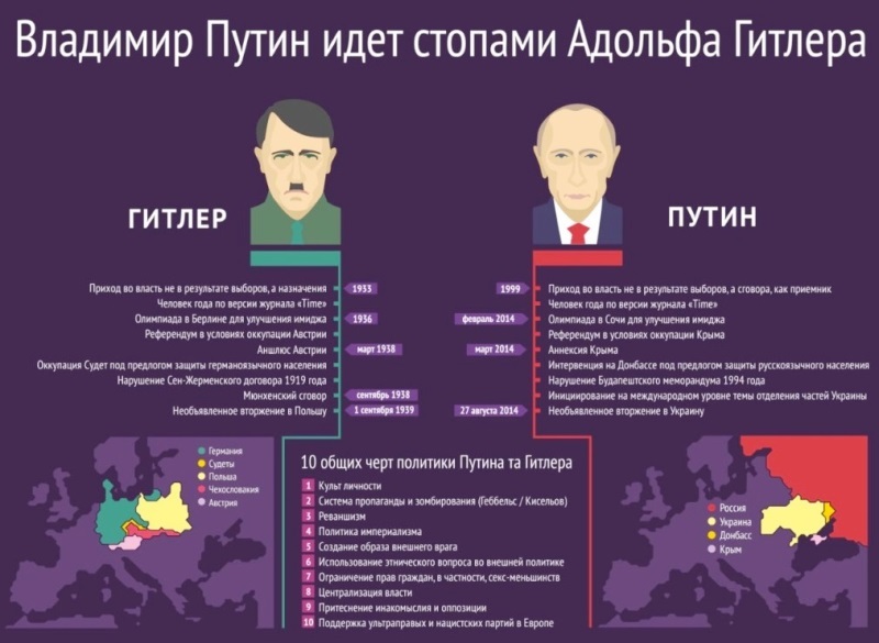 В общем, сравнивать Путина с Гитлером некорректно. Гитлер и Ко сделали много для Германии (для своей страны), Путин сделал много для Германии.