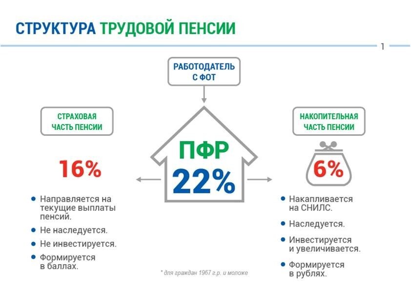 — непосредственно страховая часть (10% - сейчас считается по баллам);