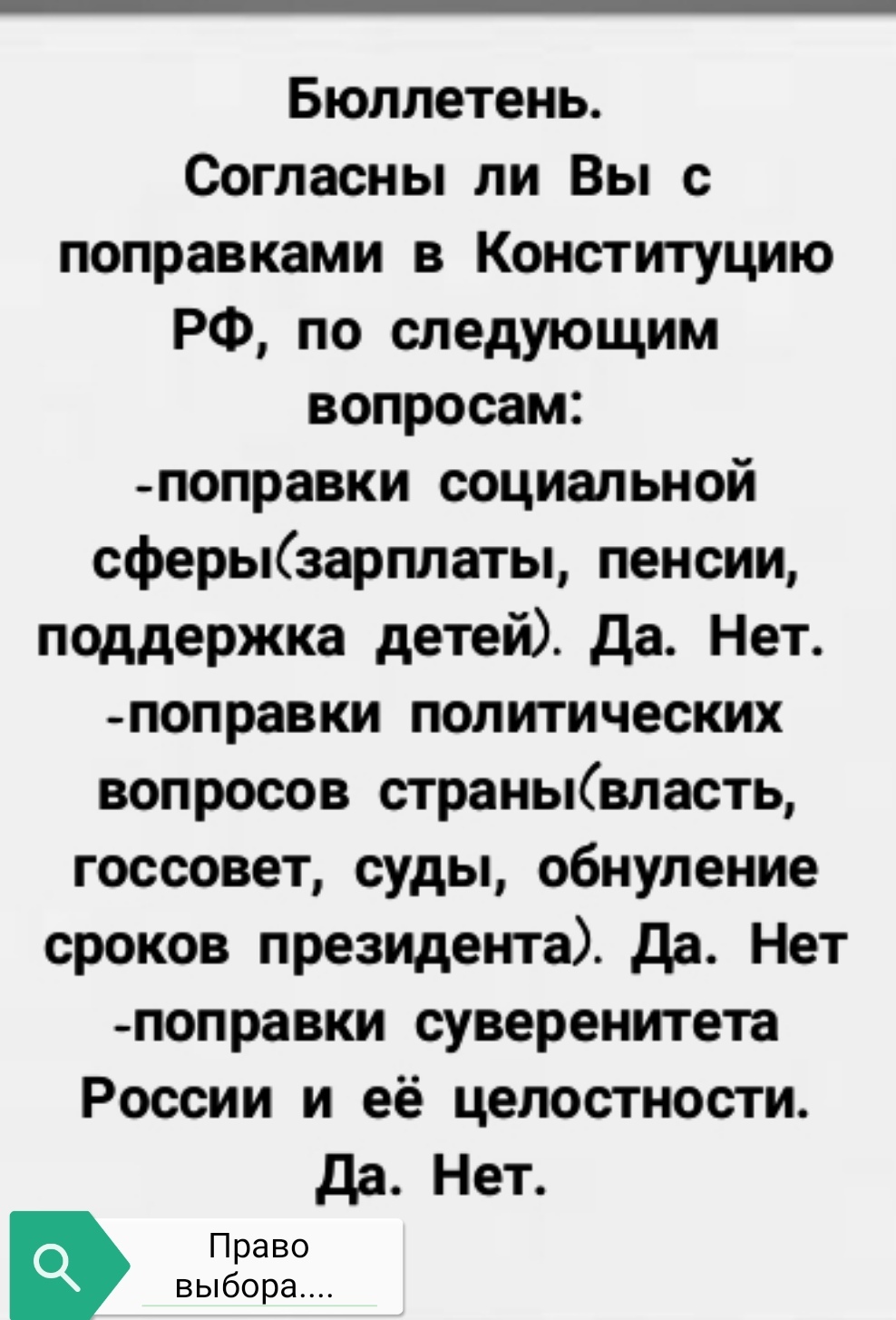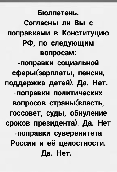 Люди должны выбирать за что они хотят голосовать, а именно за какие поправки, а за какие не хотят!
