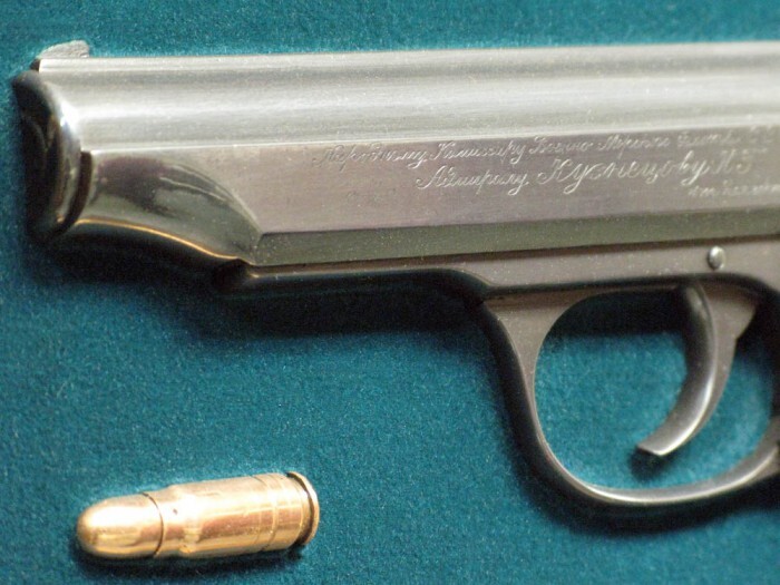 Опытный отстрел в пустынном ангаре с минусовой, до тридцати градусов, температурой, обнаружил надежность оружия, при высокой кучности и мощных боевых параметрах. Но пистолет был очень тяжелый.